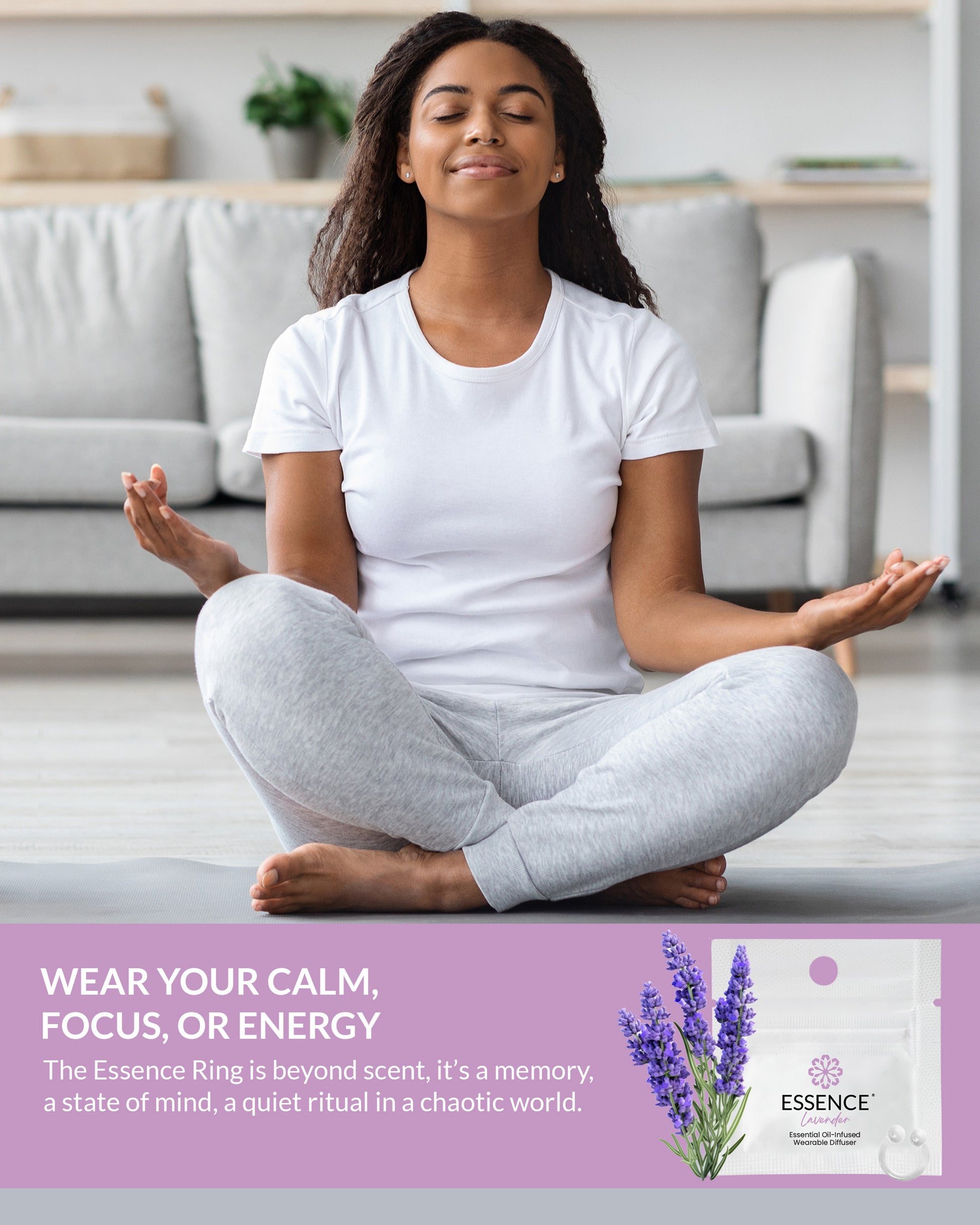 Unwind with the Lavender Essence Ring — discreet, wearable aromatherapy infused with soothing lavender essential oil for relaxation, balance, and sleep support.