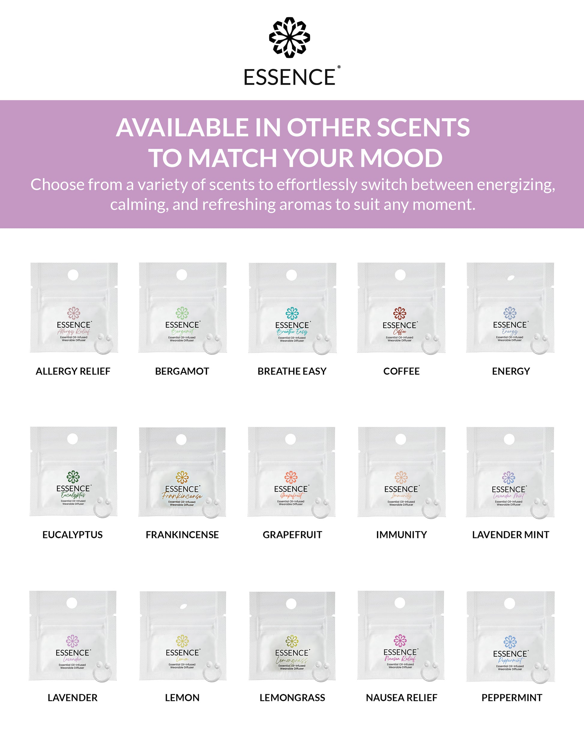 Choose from a variety of scents like Lavender, Peppermint, Eucalyptus, and more to match your mood and needs