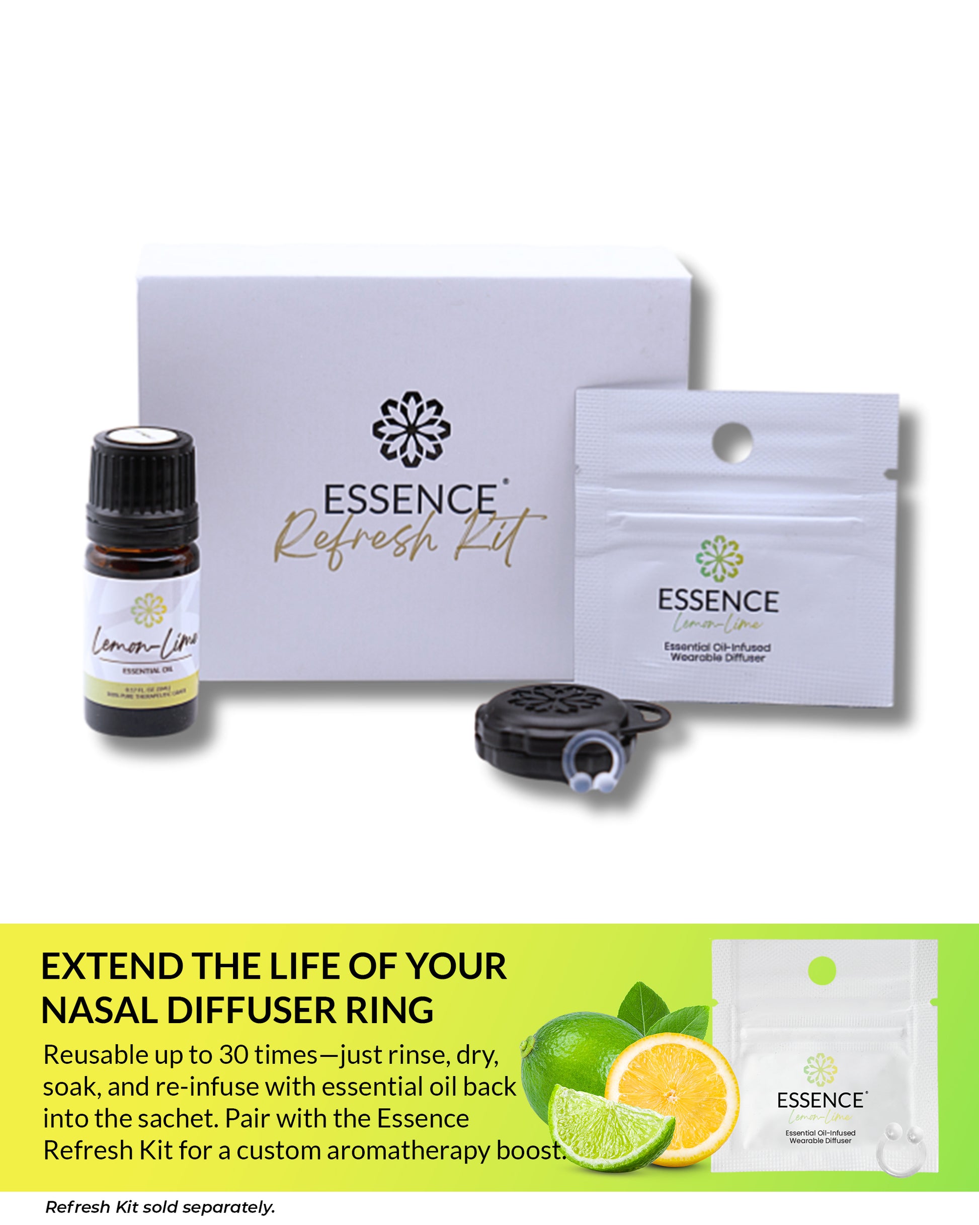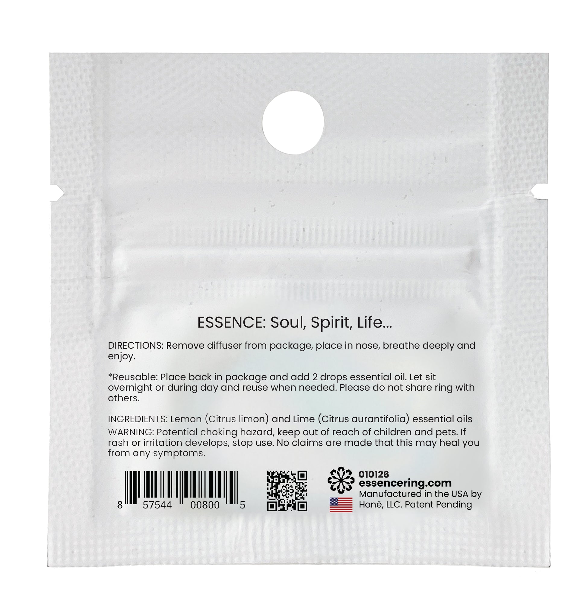 Infused with 100% pure, therapeutic-grade Lemon and Lime essential oils on a soft, hypoallergenic silicone diffuser ring.