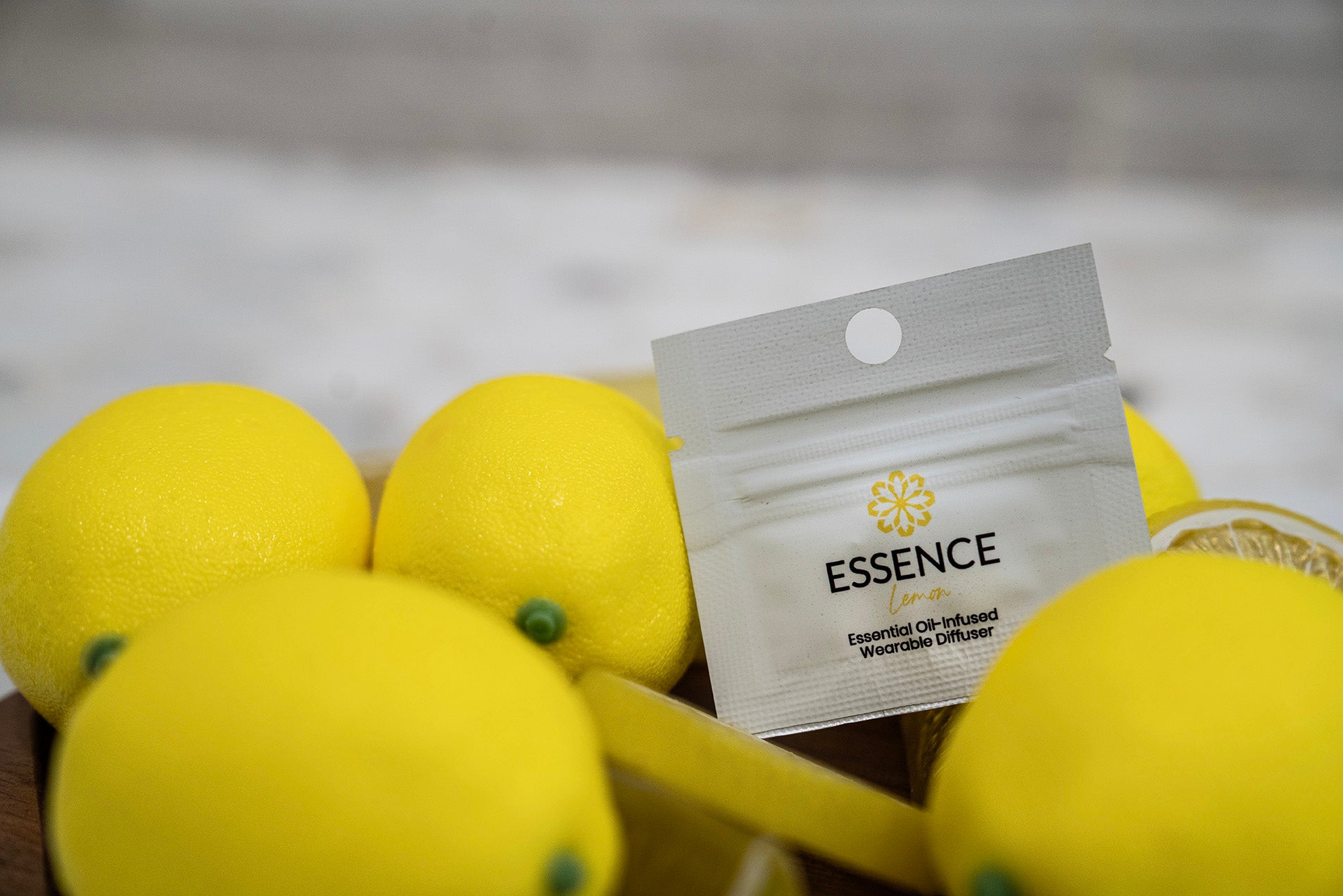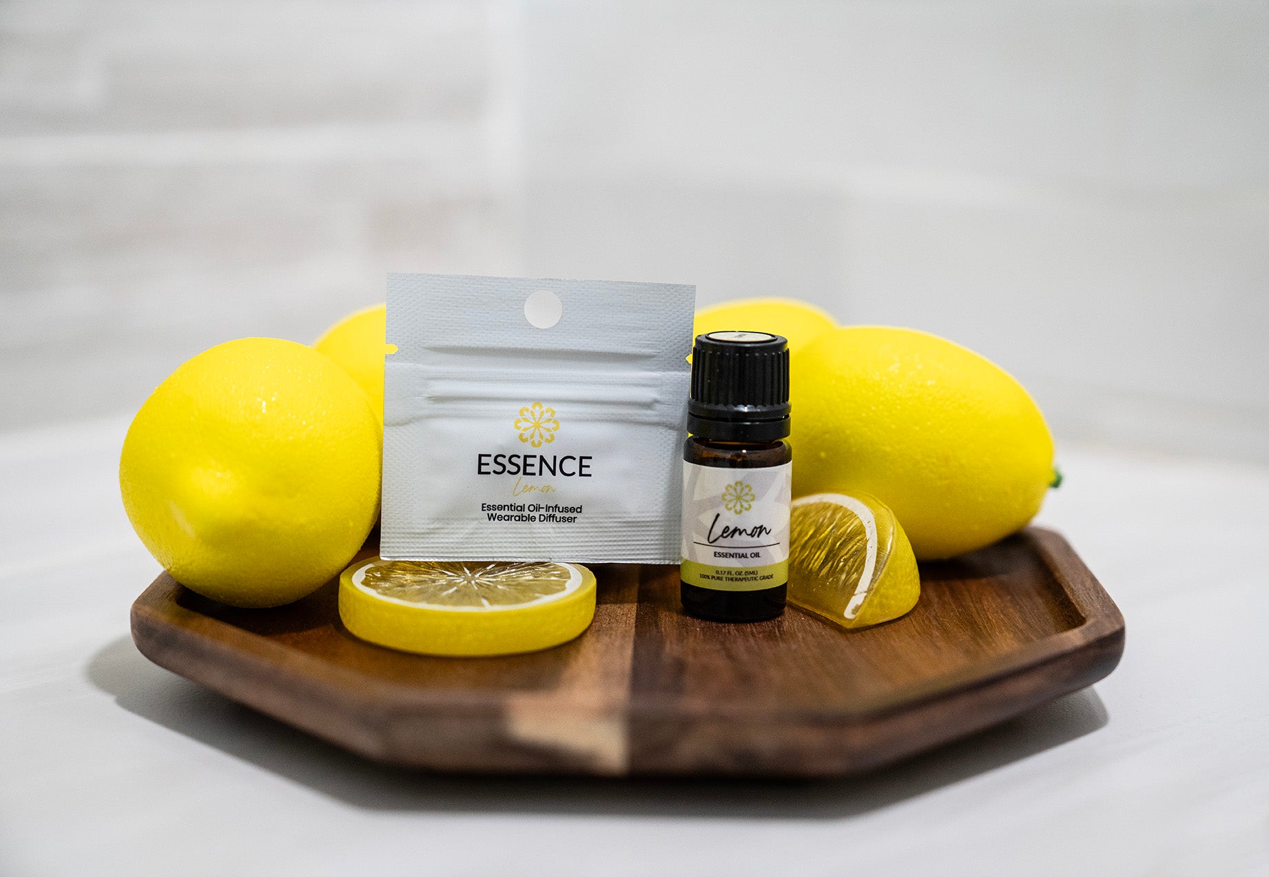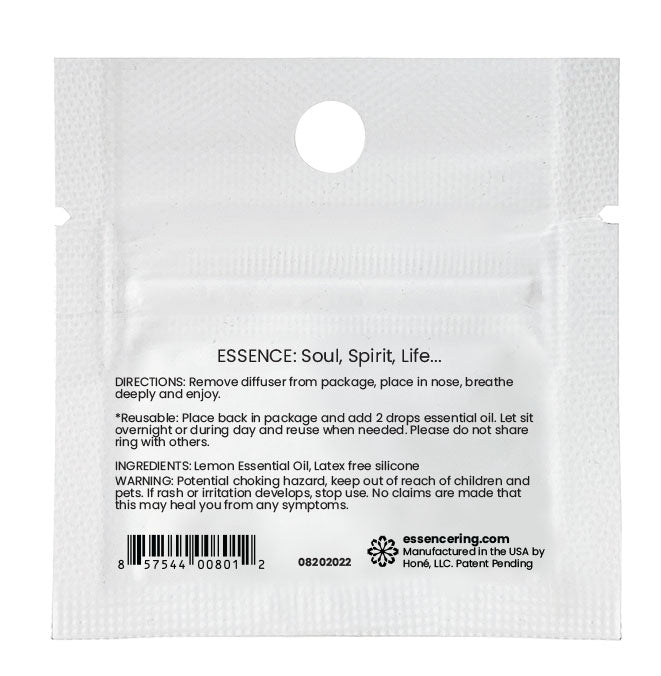Infused with 100% pure, therapeutic-grade Lemon (Citrus limon) essential oil on a hypoallergenic silicone diffuser ring.