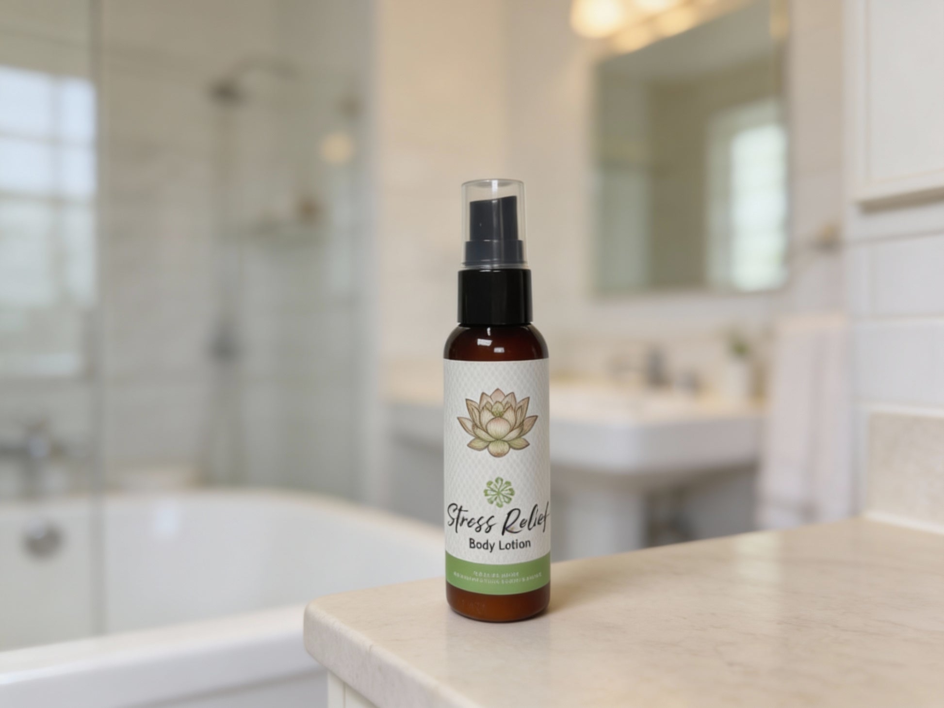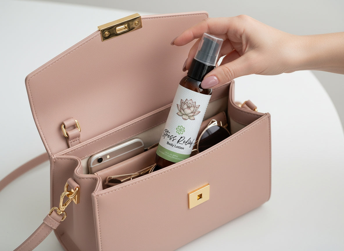 Infused with our signature Stress Relief essential oil blend, this lotion turns everyday skincare into a moment of calm.